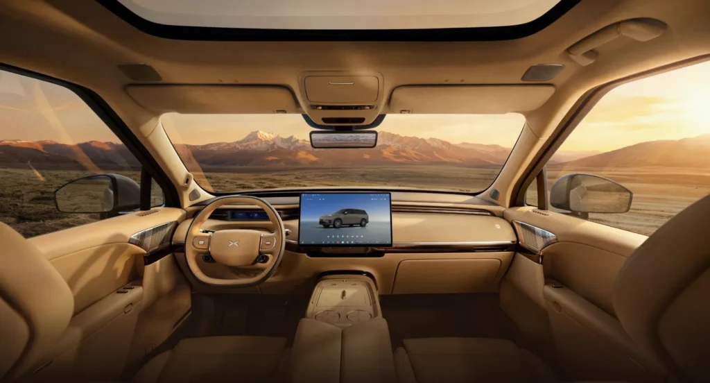 Beim Innenraum setzt der Xpeng GX auf ein klares Raumkonzept. Sechs Sitze, vollständig elektrisch verstellbar, inklusive Liegefunktion bis in die dritte Reihe. Ergänzt wird das durch Features wie einen integrierten Kühlschrank, dimmbare Scheiben und ein großes 21.4 Zoll Display.