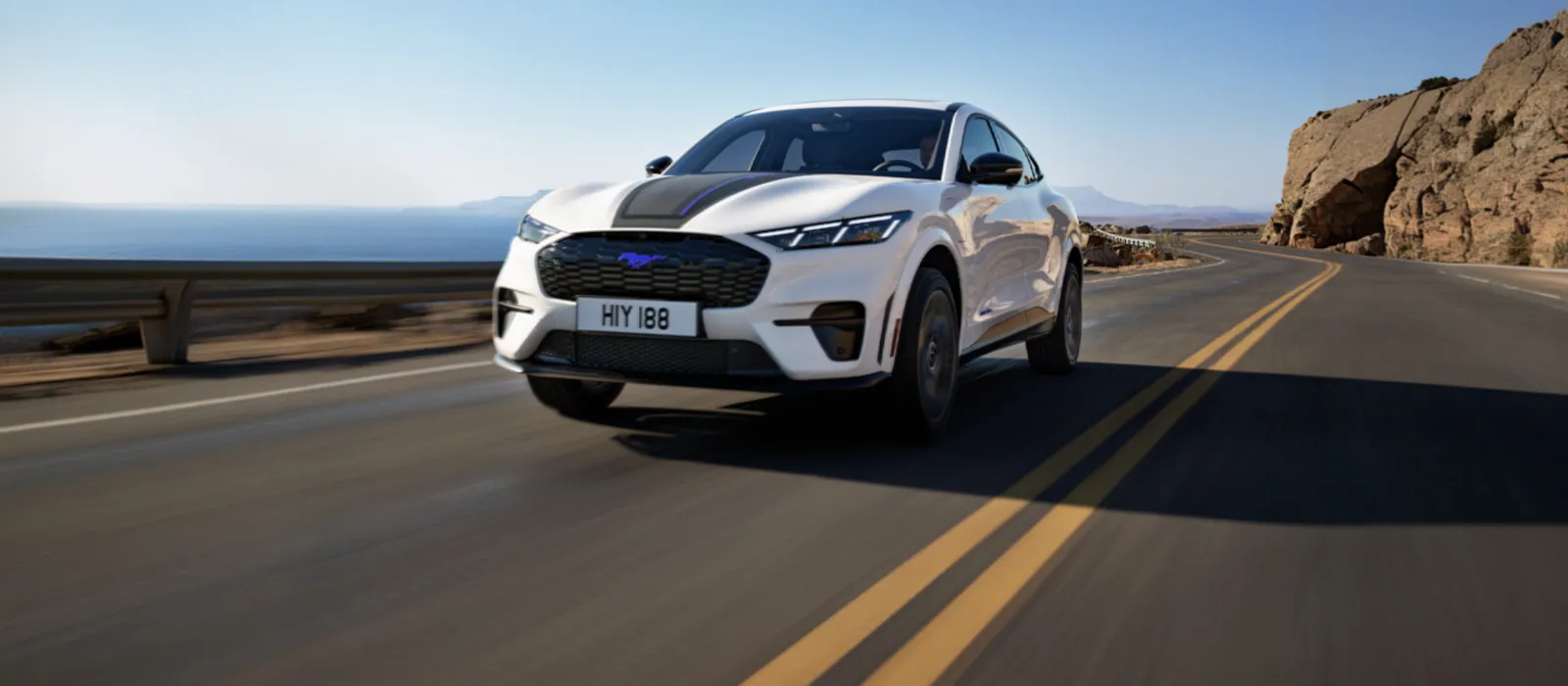 Ford überarbeitet die Mustang Mach-Mach?E?Baureihe und ergänzt sie parallel um die neue GT California Special?Variante. Die Sonderedition setzt auf ein eigenständiges Erscheinungsbild mit 20-Zoll Leichtmetallrädern in Carbonised Grey, GT/CS Logos, Rave Blue Emblemen und markanten Längsstreifen auf der Motorhaube mit „California Special“ Schriftzug. Die Farbgestaltung kombiniert Grau, Schwarz und Blau, wobei Blau den Pazifik symbolisieren soll.